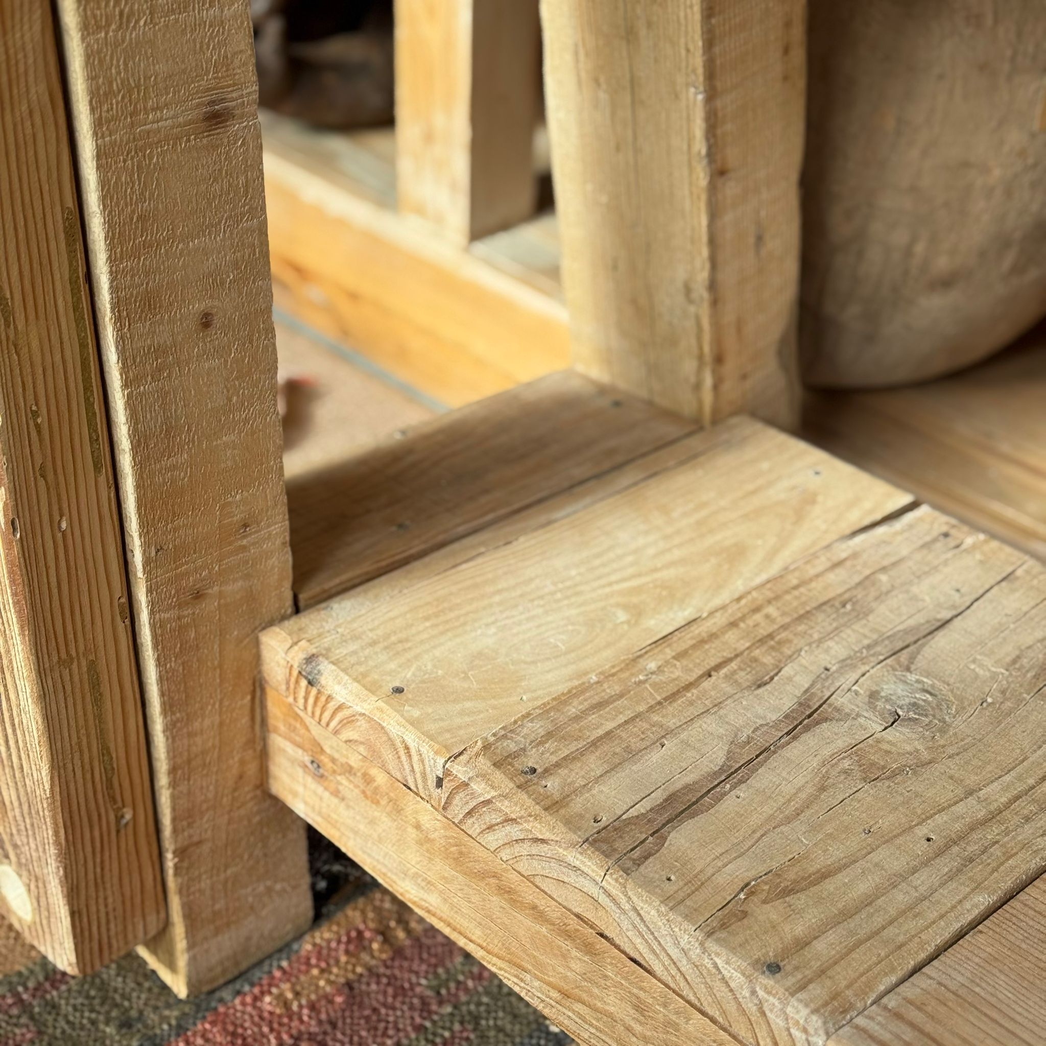 Esta consola de pino viejo hecha a mano aporta el carácter y la funcionalidad de un banco de carpintero antiguo a su hogar. Fabricado con madera maciza de pino recuperada, conserva el encanto rústico y crudo que le da un auténtico aspecto vintage. El acabado de color natural realza la belleza de la veta y la textura de la madera, convirtiéndola en un complemento perfecto para cualquier espacio interior que busque un toque de historia.