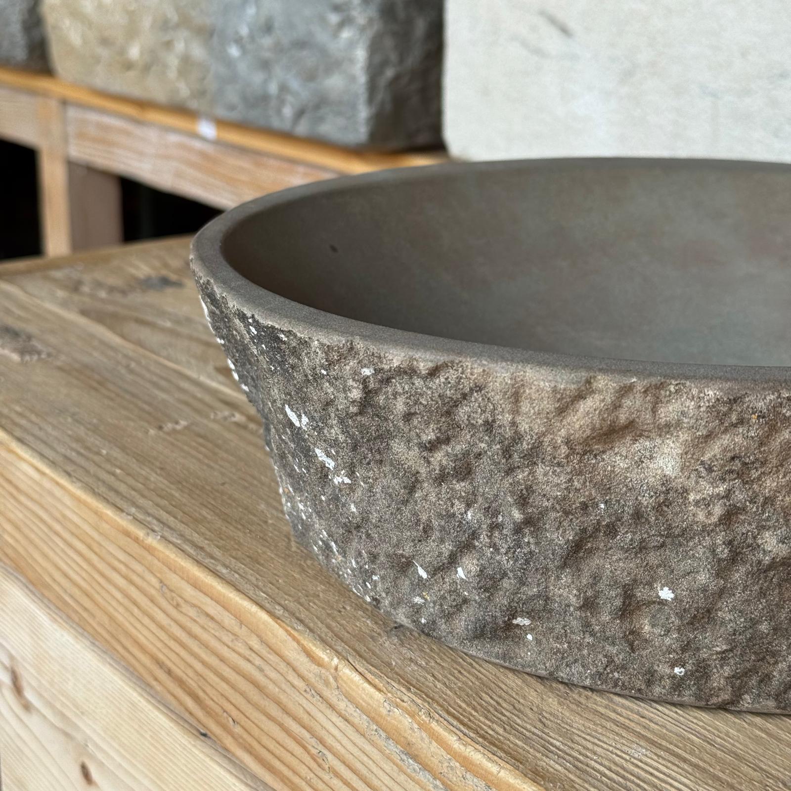 Su exterior rugoso muestra la huella natural del tiempo, mientras que el interior suavemente trabajado aporta practicidad para el día a día. «Fitor» es más que un lavabo: es una pieza cargada de historia, transformada en diseño exclusivo para el hogar.