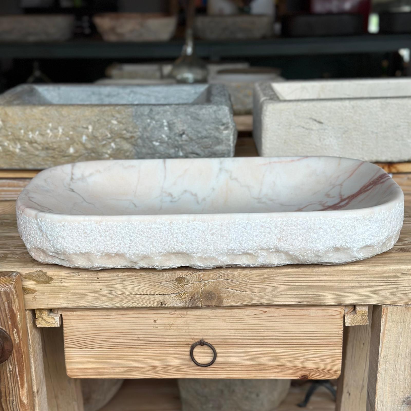Tallada a mano con delicadeza, su diseño ovalado y equilibrado encaja en espacios sofisticados, desde baños minimalistas hasta entornos mediterráneos con toques de calidez. La «Lisboa» no busca imponerse, sino destacar con sutileza y elegancia.
