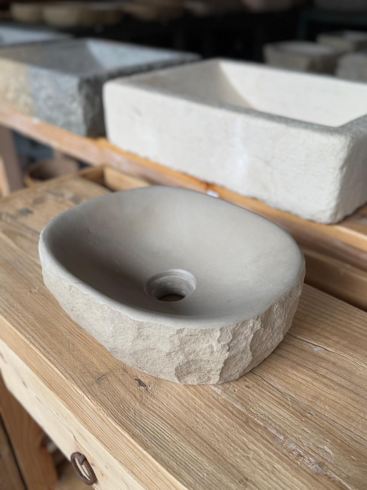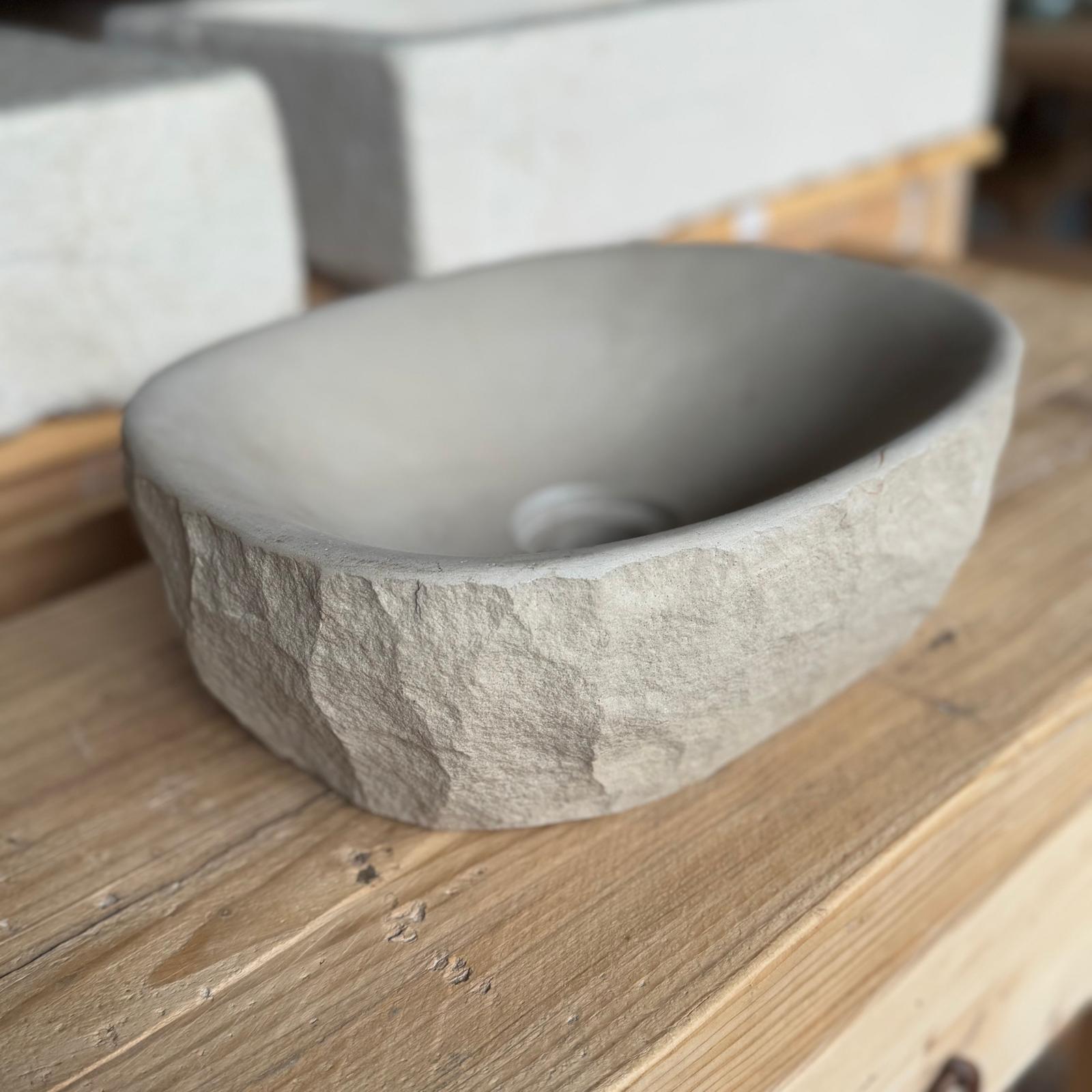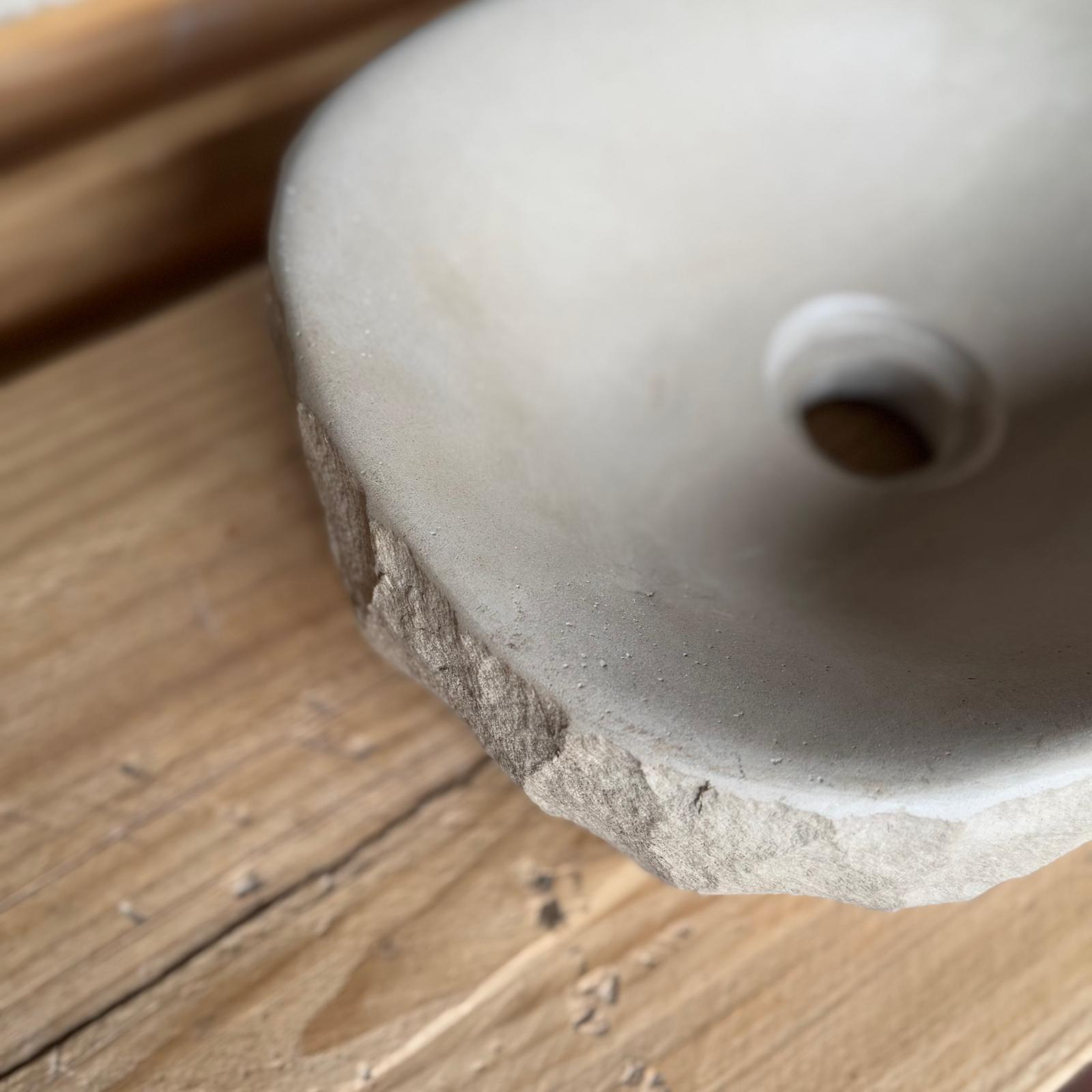 🪨 Material: Piedra natural de Girona, exterior en bruto e interior pulido