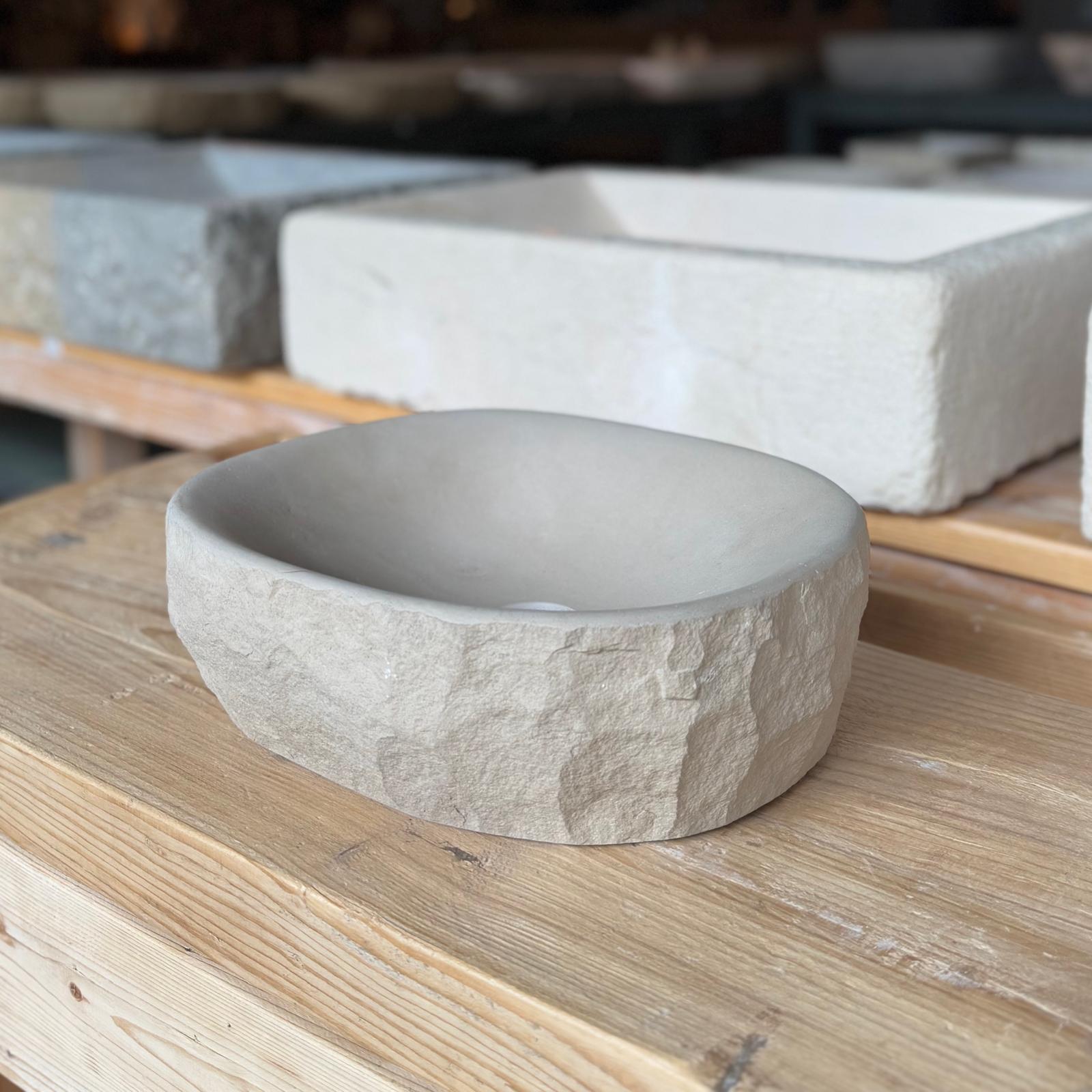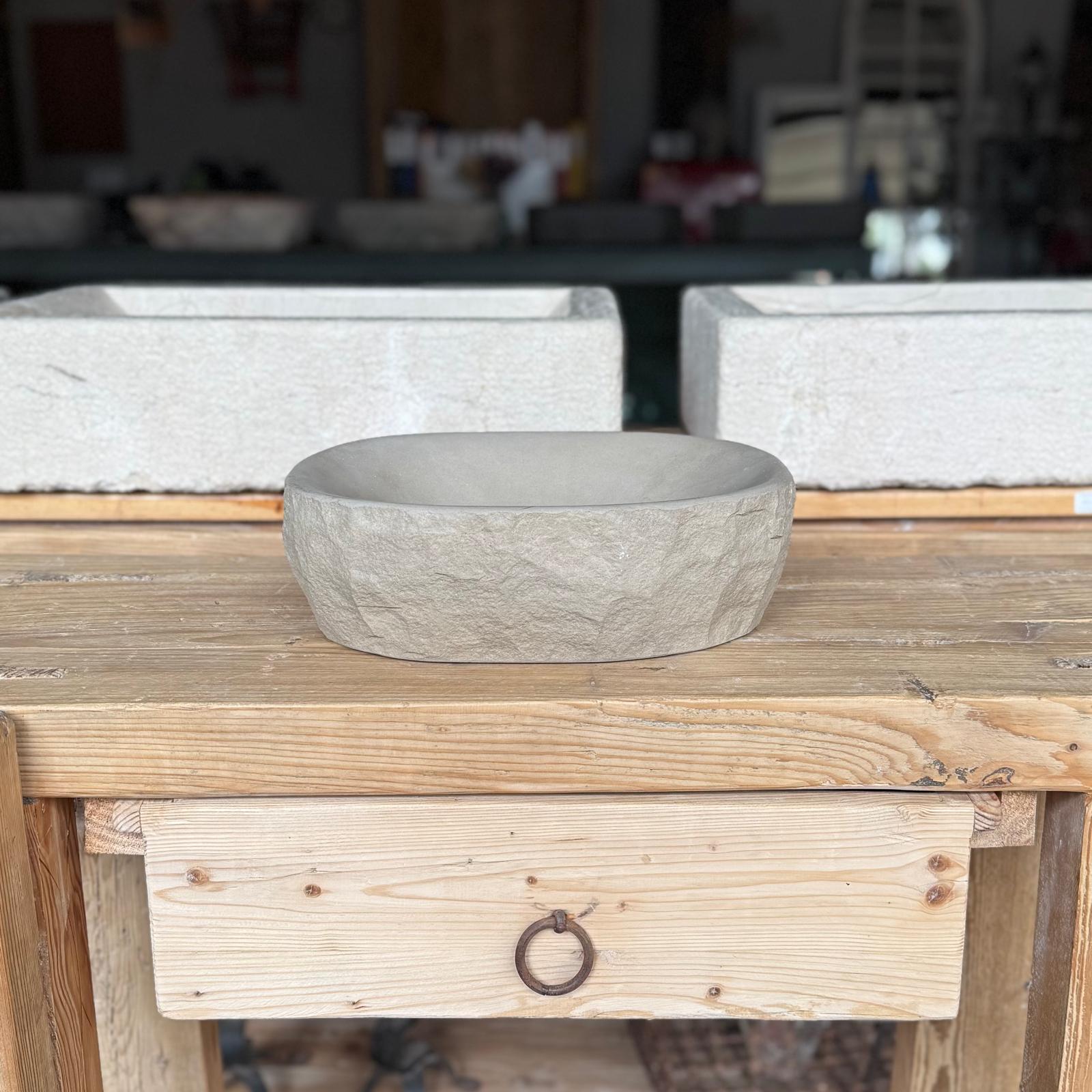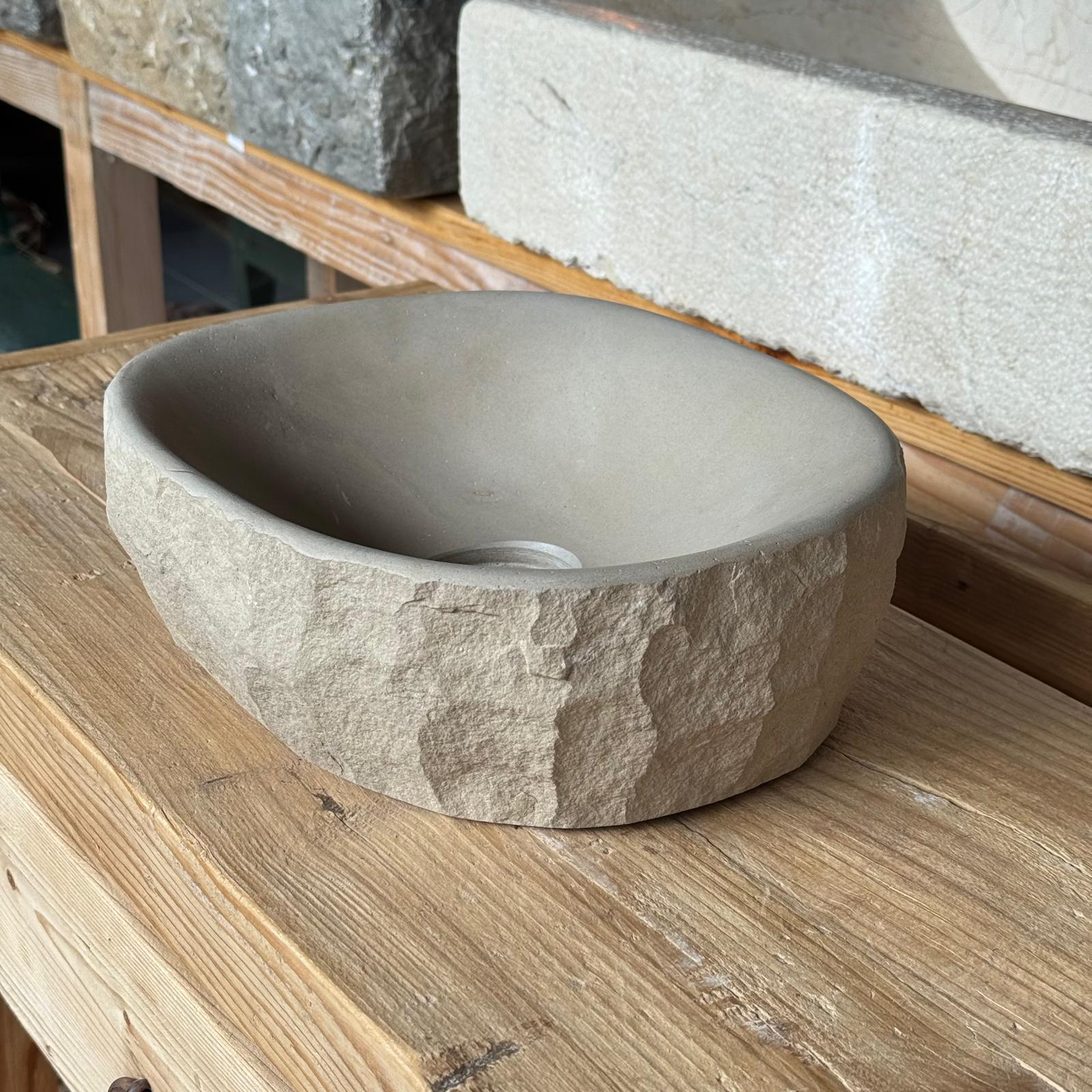 🪨 Material: Piedra natural de Girona, exterior en bruto e interior pulido