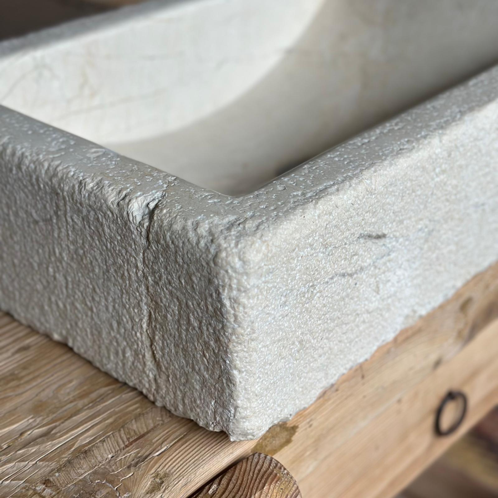 Sólida y de líneas limpias, «Pardines» está tallada a mano en piedra natural del valle de Pardines. Su volumen robusto y su diseño rectangular aportan carácter y estabilidad visual a cualquier baño que busque autenticidad y elegancia natural.
