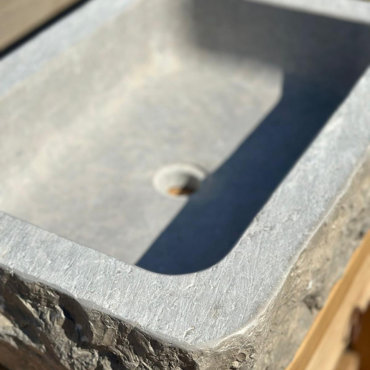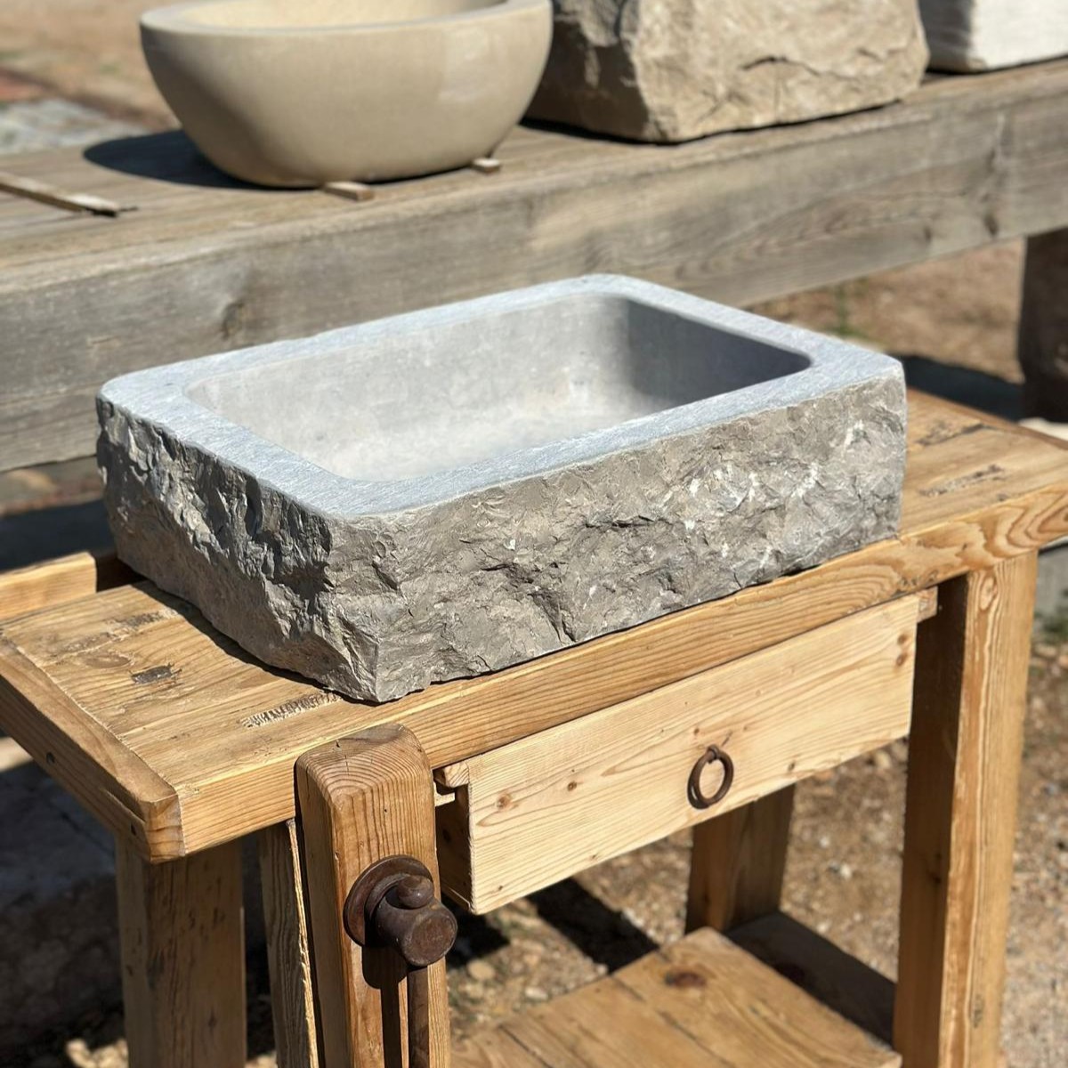 La pica «Pedraforca» combina la solidez de la piedra natural de Lleida con un diseño rectangular robusto y elegante. Su exterior rugoso conserva la esencia de la roca, mientras que el interior pulido aporta funcionalidad y sofisticación. Ideal para baños de estilo rústico, contemporáneo o mediterráneo.