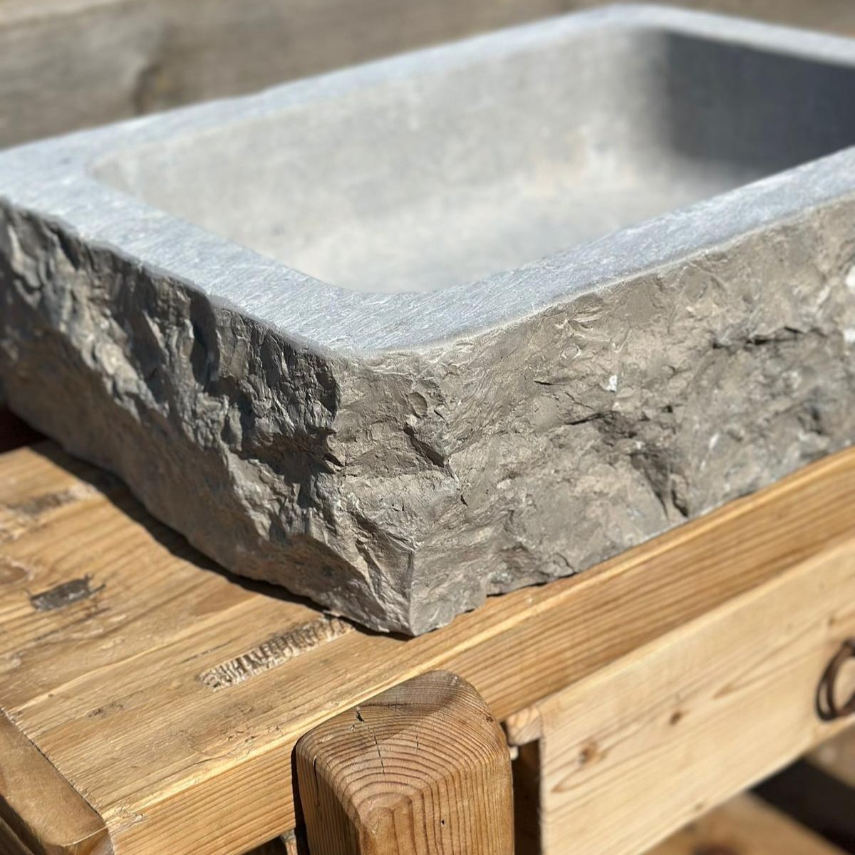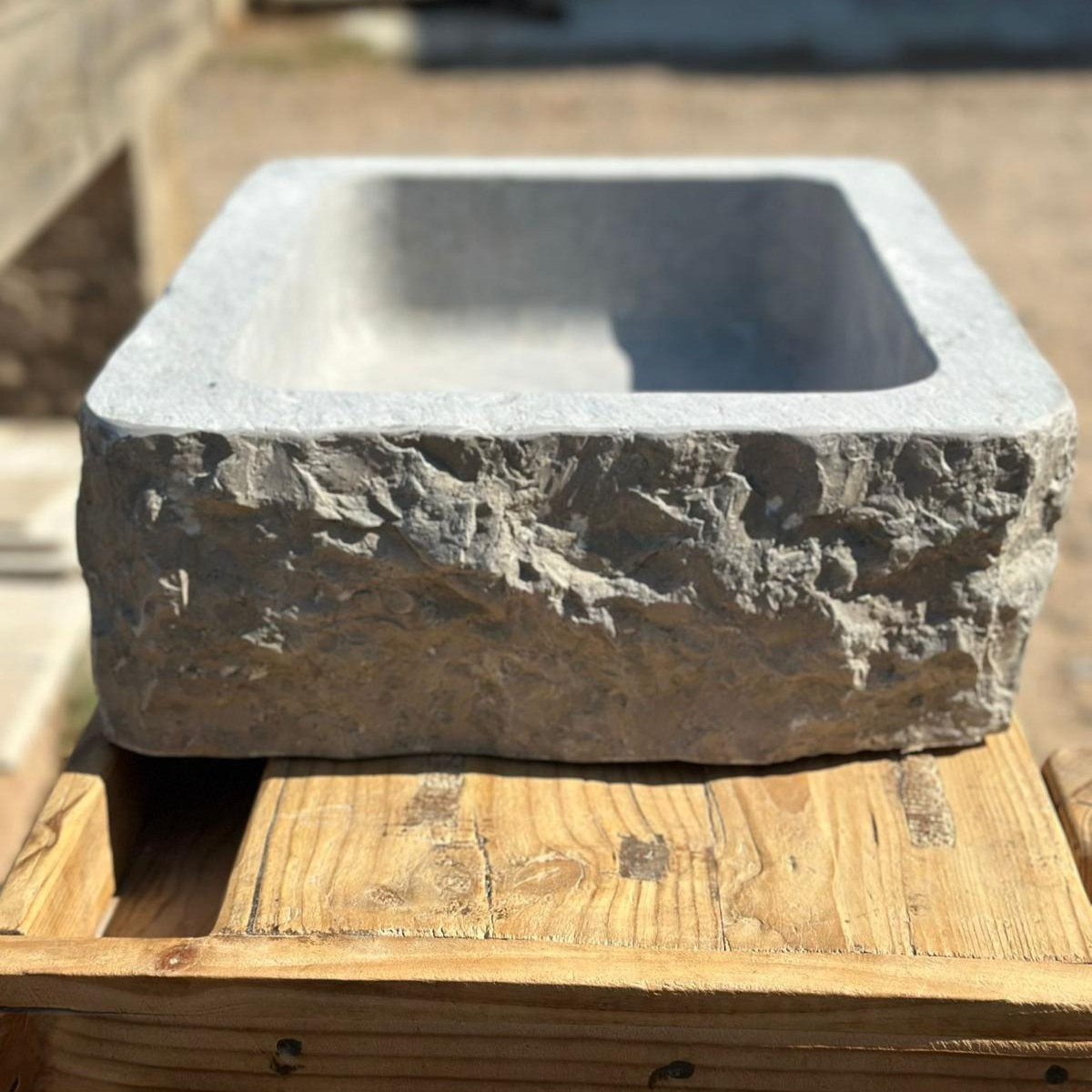 🪨 Material: Piedra natural de Lleida, exterior en bruto e interior pulido