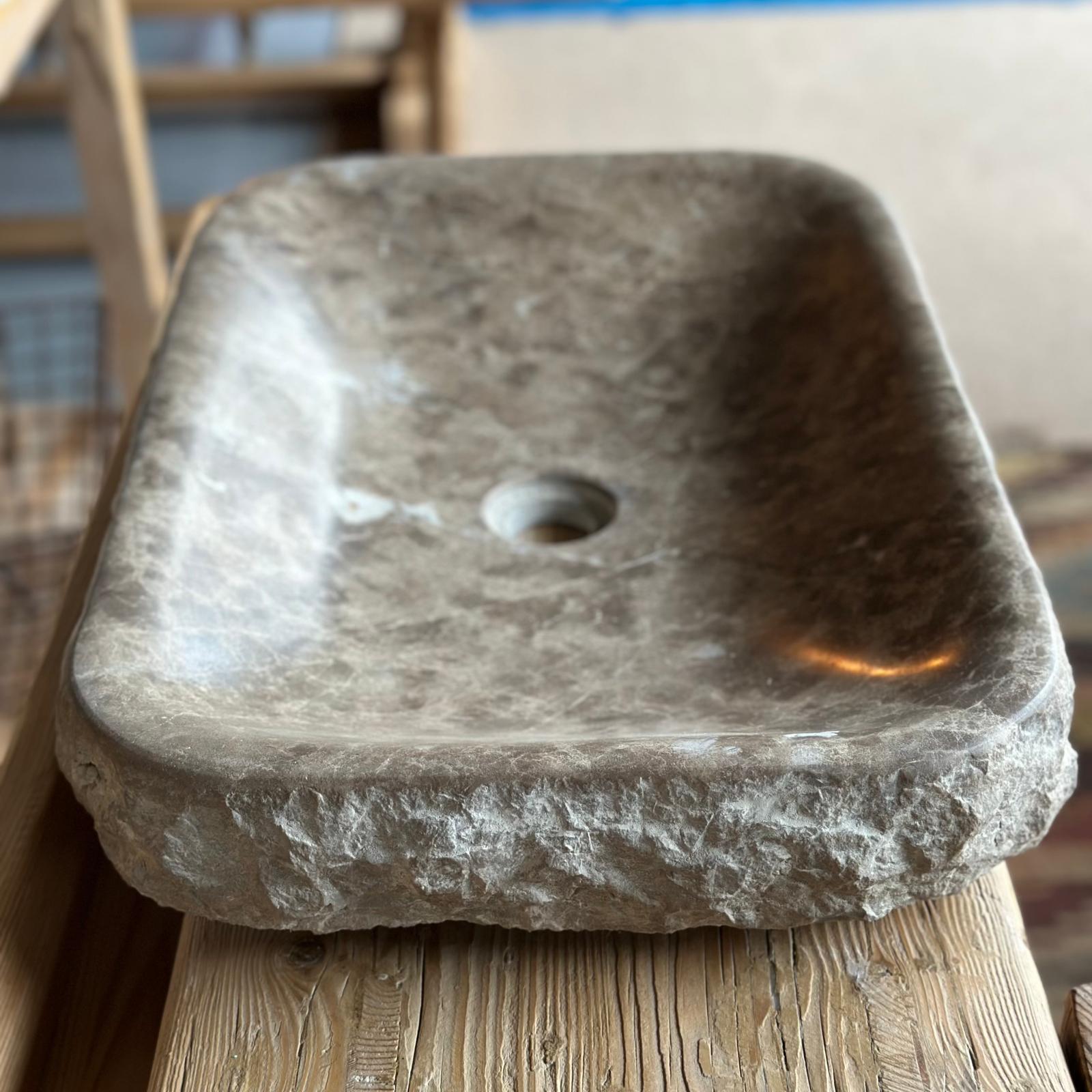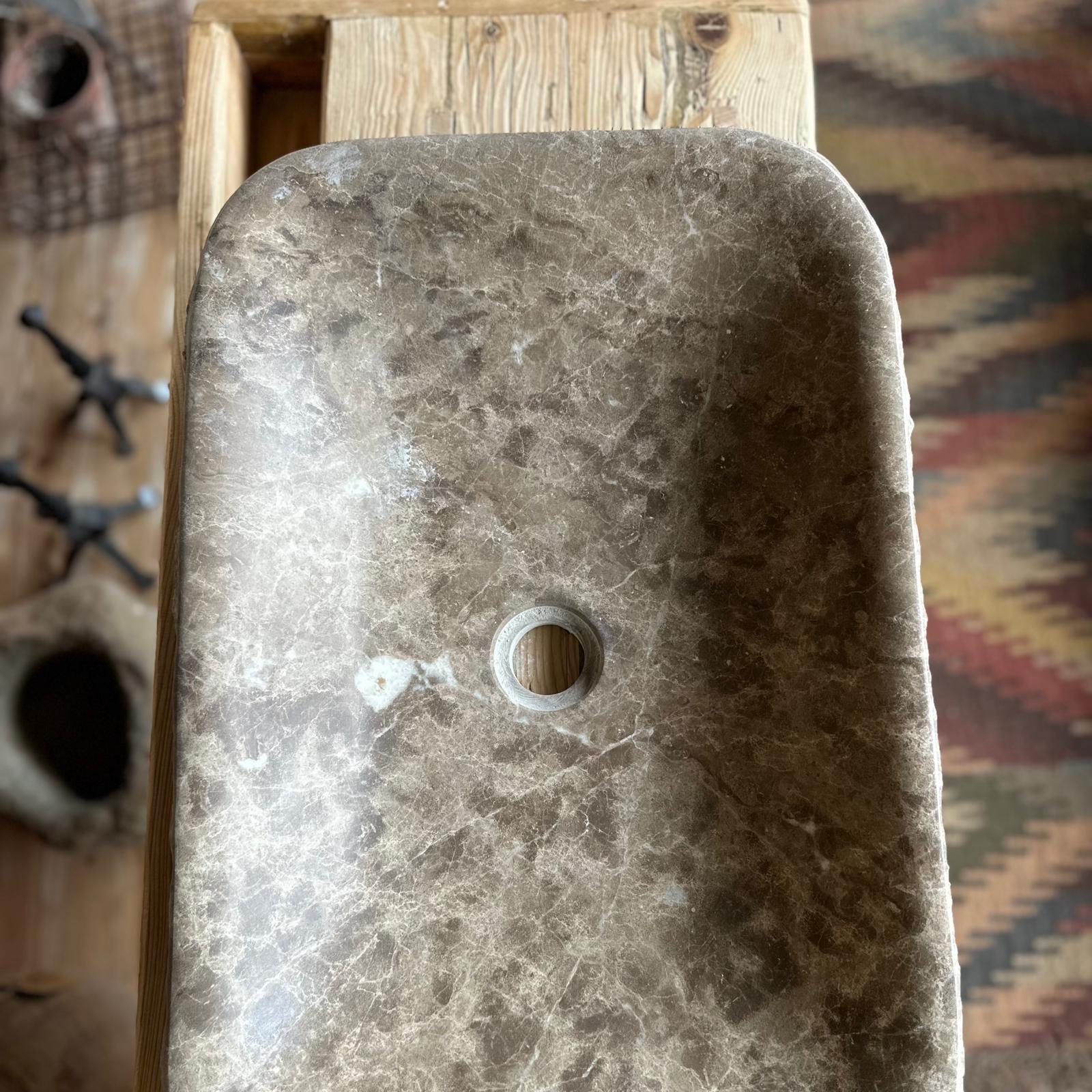 Cada unidad es tallada a mano a partir de piedra de Lleida, seleccionada cuidadosamente por su resistencia y belleza. Su forma rectangular de bordes redondeados y proporciones equilibradas la convierten en una pieza funcional y decorativa a partes iguales.