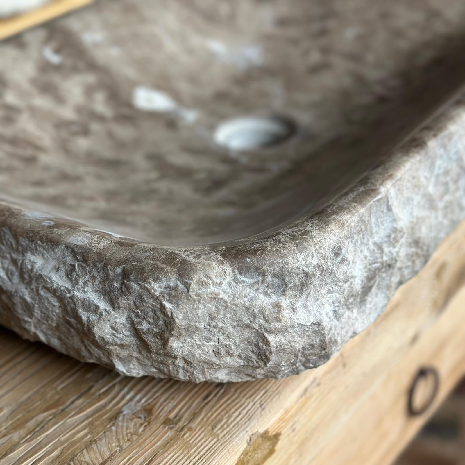 «Pedralta» es una elección para quienes aprecian la singularidad y el valor de lo hecho a mano. Ninguna piedra es igual a otra: tu lavabo será único.