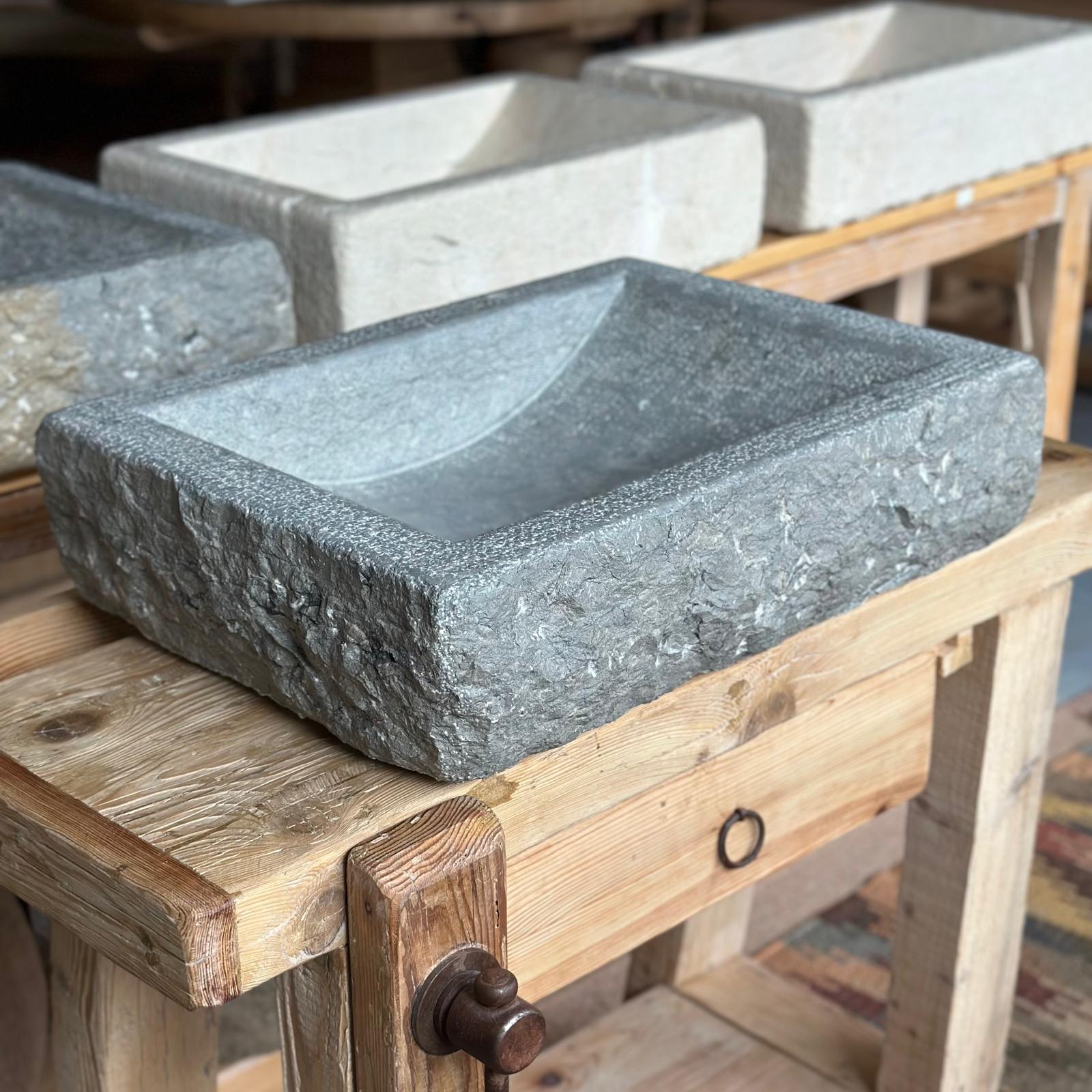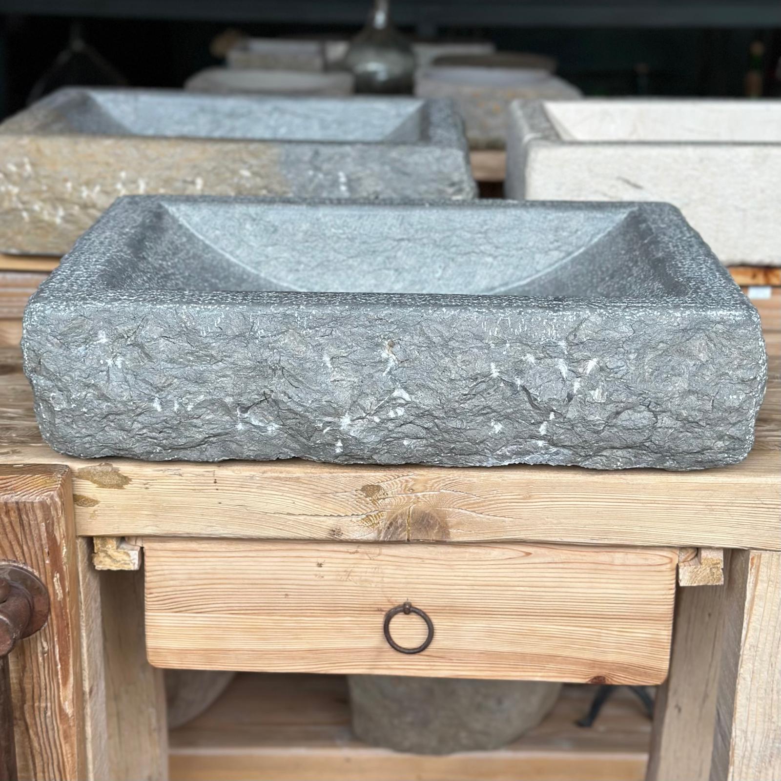 De formas sólidas y presencia rotunda, «Talaia» está tallada a mano en piedra natural de Girona. Su diseño rectangular de bordes gruesos transmite fuerza y estabilidad, perfecta para baños con personalidad marcada y estética atemporal.