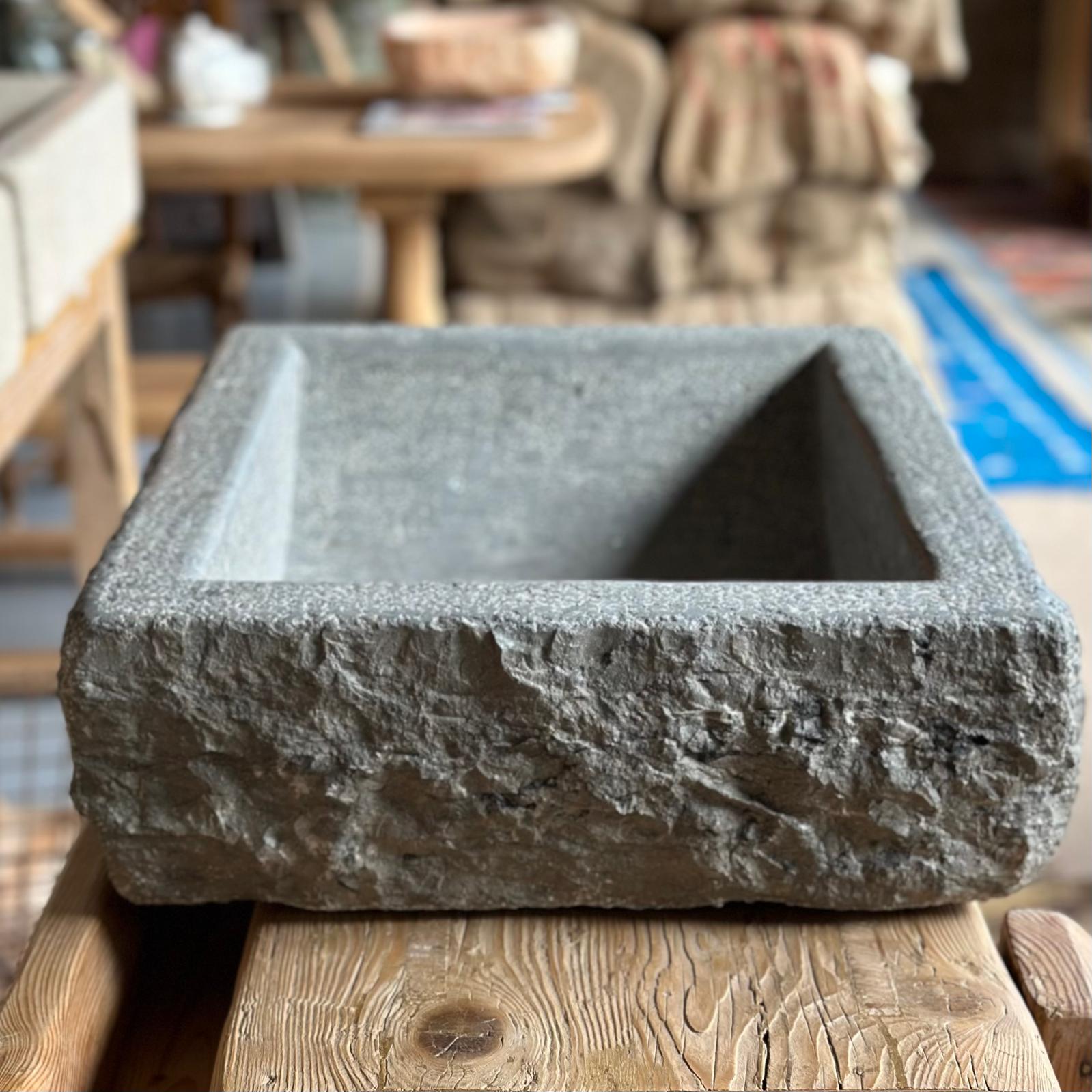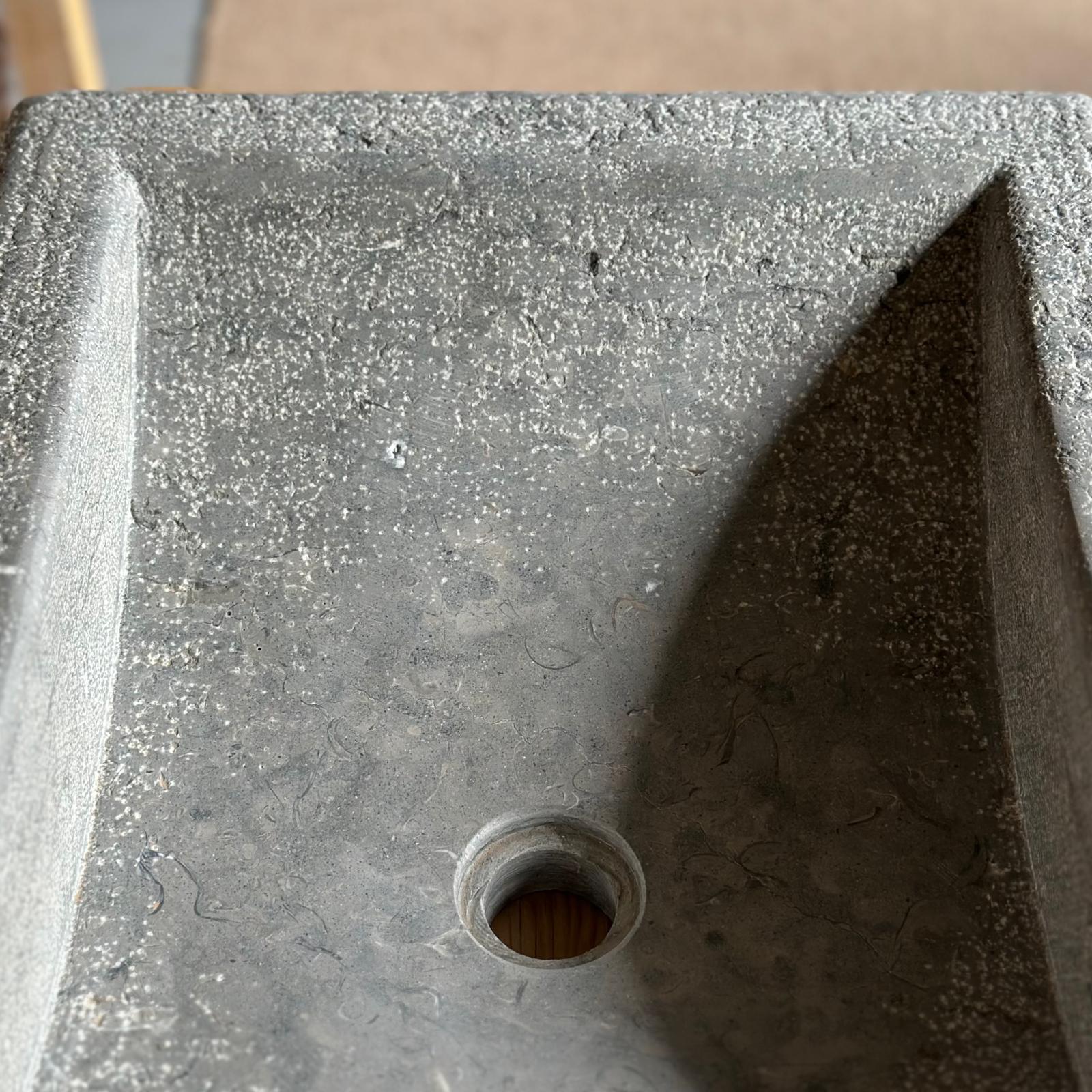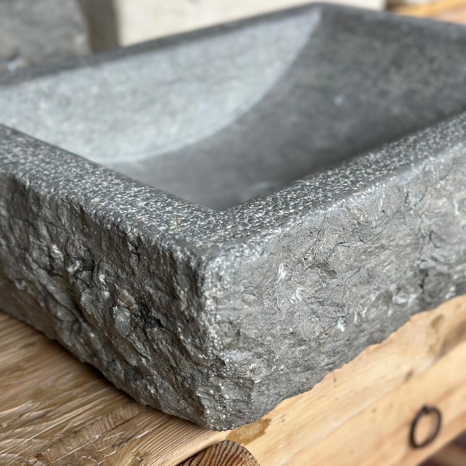 Inspirada en los antiguos puntos de observación de piedra, la pica «Talaia» es una pieza imponente que evoca solidez, permanencia y sobriedad. Tallada a mano en piedra natural de Girona, su diseño rectangular con bordes rectos y marcada profundidad aporta una presencia arquitectónica y sobria al espacio de baño.