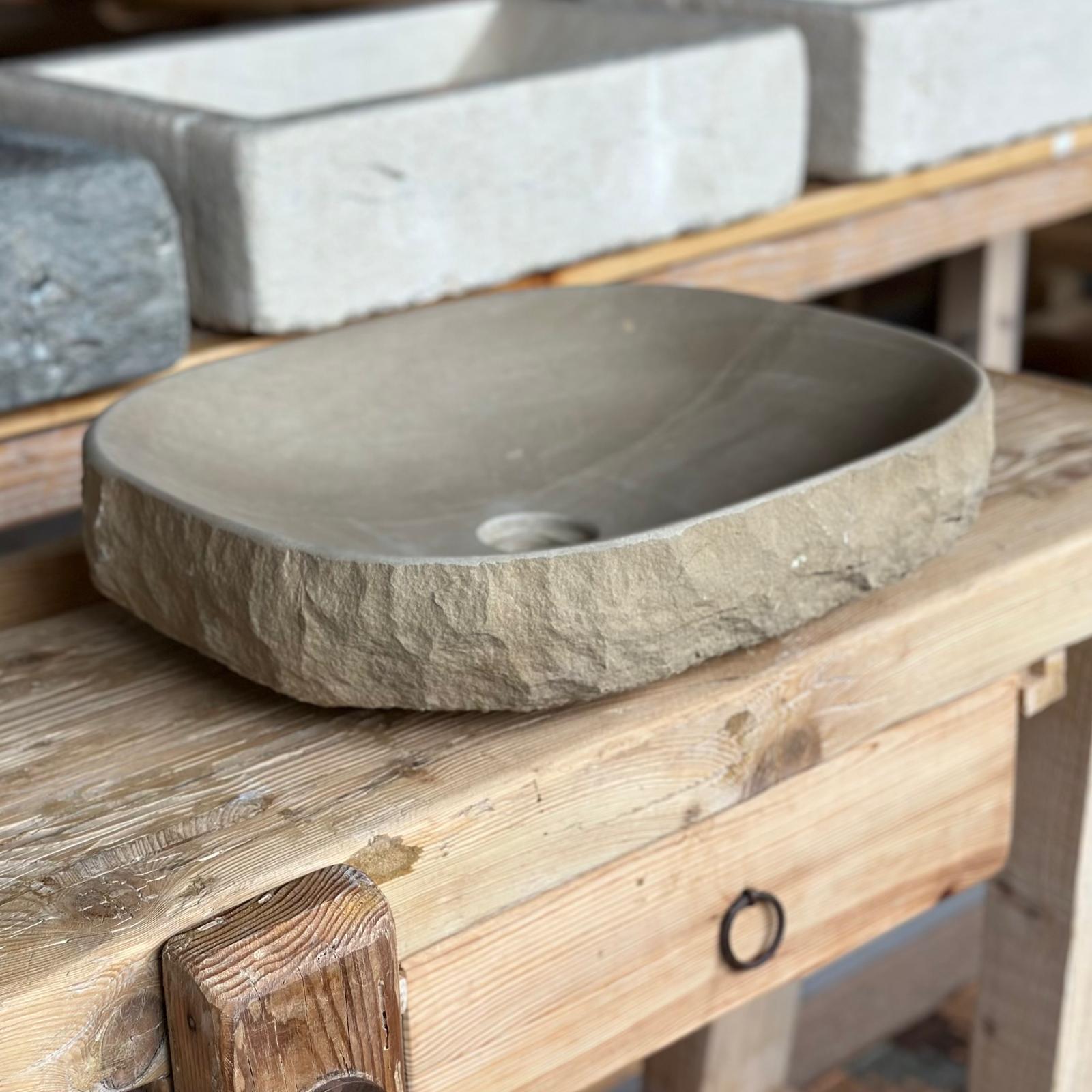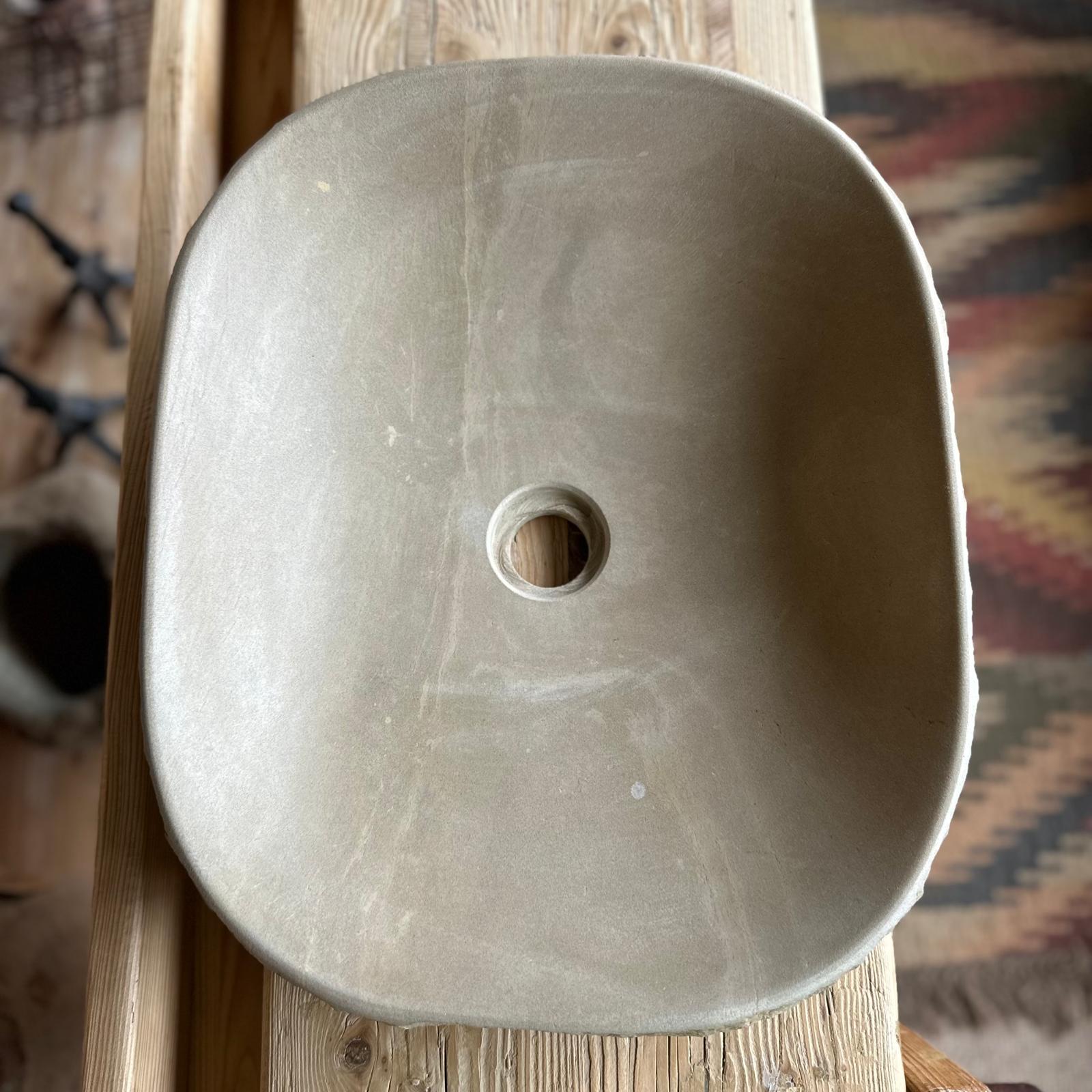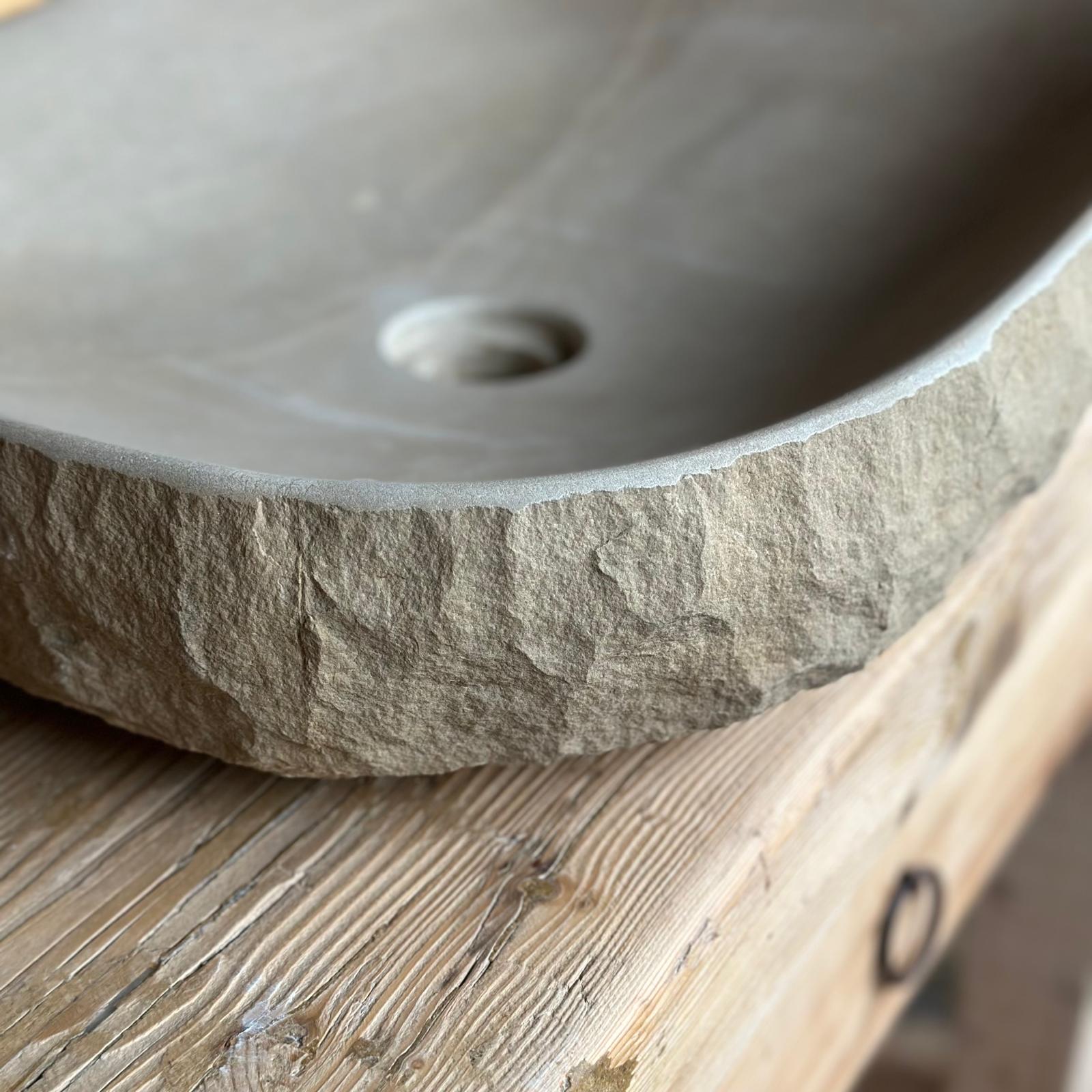 Sutil y armoniosa, «Terra Fina» está tallada a mano en piedra natural de Vic. Su tamaño compacto y su forma ovalada la convierten en la opción perfecta para baños con espacio reducido que no renuncian al diseño y a la autenticidad.